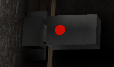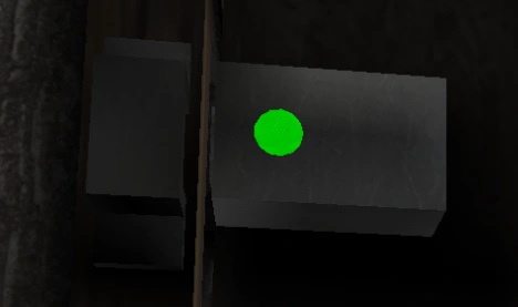The appearance of this lock is similar to the Switch Lock The color of the neon red light on the lock is dependant, if the door is locked, it is red, and if it is unlocked, it will become green. When the needed item is used on this lock, the glare, metallic part between the two cubes will move away, thus opening the Stair Closet. It works much like a piston.